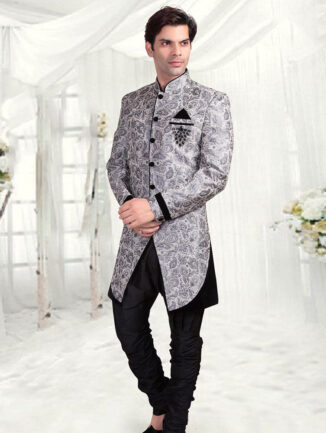 Ice Blue Jacquard Silk Indowestern Sherwani Wedding